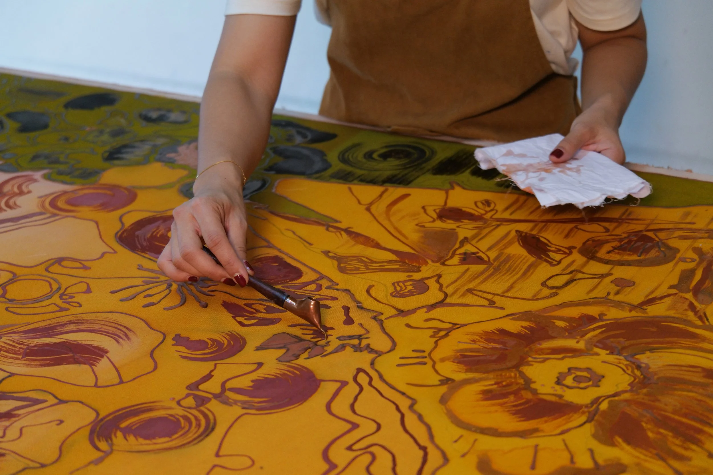 British & Indonesian textile artist Lisa King re-examines the ancient technique for a contemporary world through colour, pattern, and cross-cultural collaborative experimentation across art, fashion, and interiors.